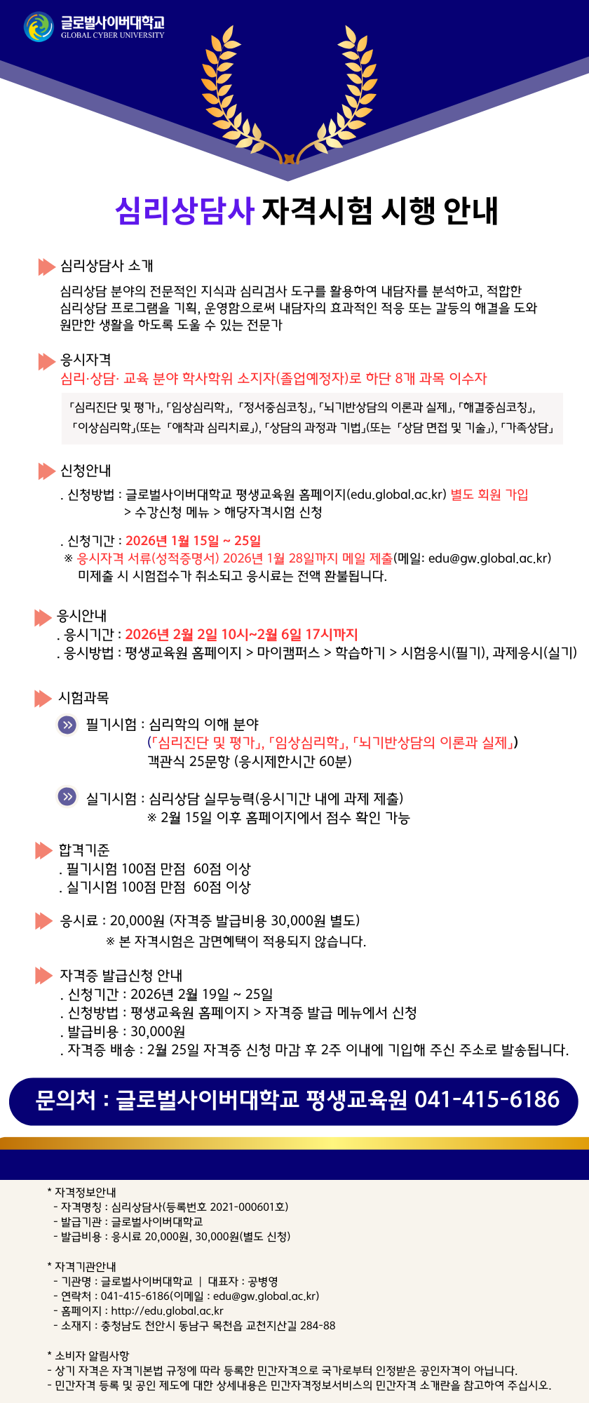 수강기간 시험기간 : 2026.2.2(월)10:00 ~2.6(금) 17:00