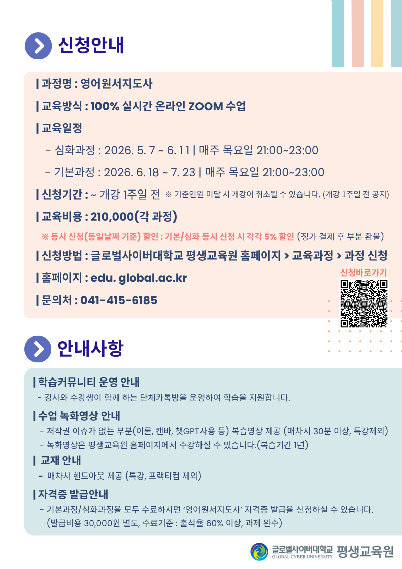 모집기간 ~ 2026.6.11 (기본/심화 동시 신청 시 각 과정 5% 할인, 정가 결제 후 환불)
